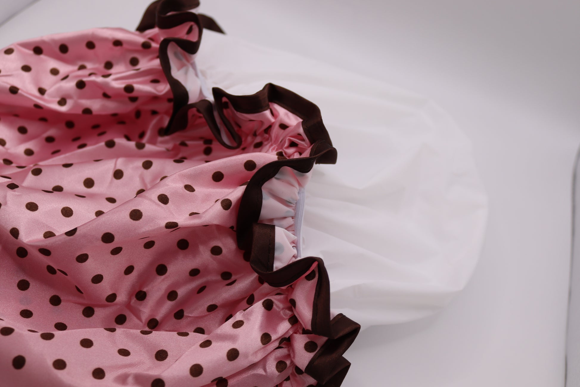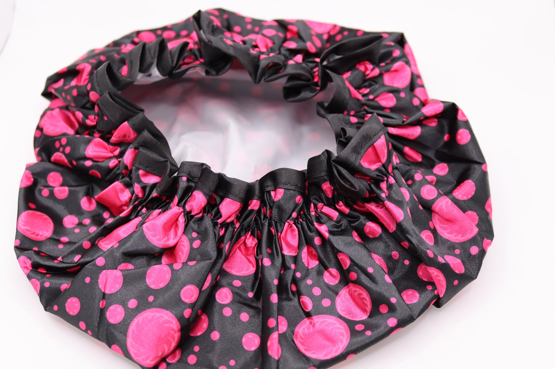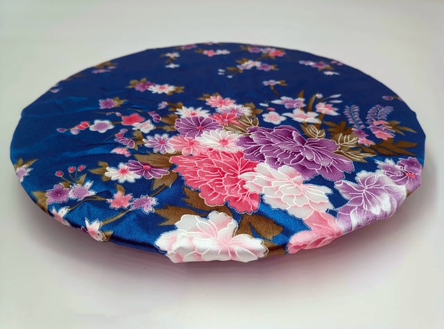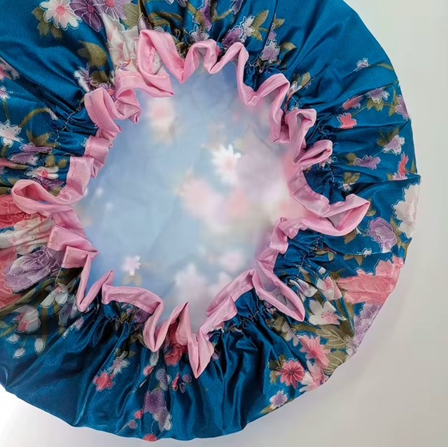 Weicher und glatter leichter Satinstoff, die Duschhaube für Damen ist doppellagig, die innere Schicht ist wasserdicht, mit elastischem Gummiband am Rand, elastisch und ungiftig, dieser Hut verblasst nicht so leicht .
